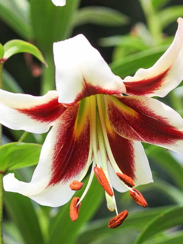 • Окраска цветка : цветок белый с винно-красным центром